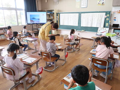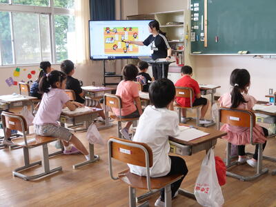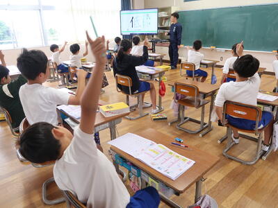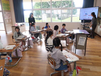 2日の5時間目、さくら市内の外国語の授業に関わる先生方の研修として、5年生教室で外国語の研究授業が行われました。