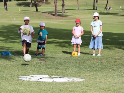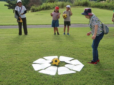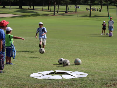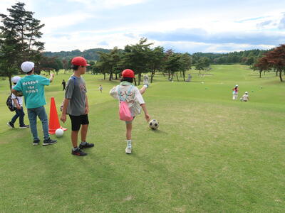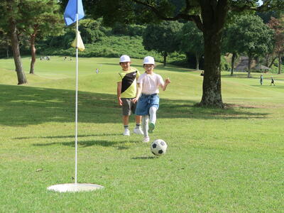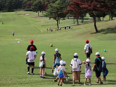 (参考)さくら市では、数年前から市内のゴルフ場を舞台に、フットゴルフ(大きめのボールを足で蹴って、ゴールに入れる)を推進しています。将来的には「フットゴルフの聖地」を目指しているそうです。市内の学校でもその体験活動を進めていて、本校でも高学年で実施しています。5月には6年生が市内ゴルフ場で体験を行いました。その様子については5/30のホームページ(ここをクリック)に掲載していますのでよろしければご覧ください。