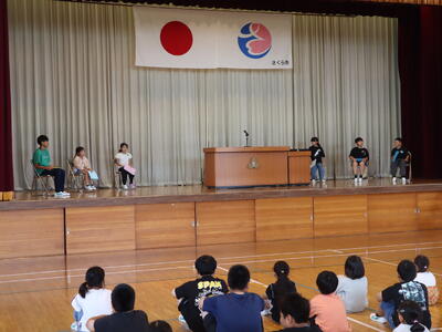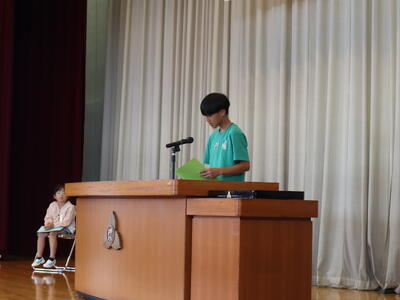 なお、校長の話の前に、学校運営協議会からの子どもたちへのメッセージ動画を紹介しました。夏休み明けに何やら楽しげな企画があるようです。どんな内容かは夏休み明けに分かるようですので、お楽しみに!