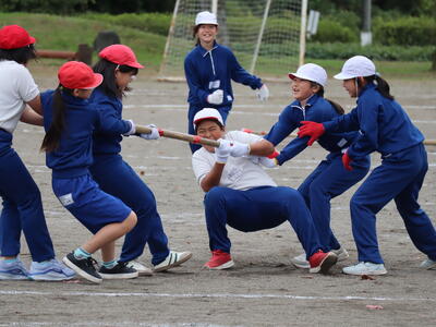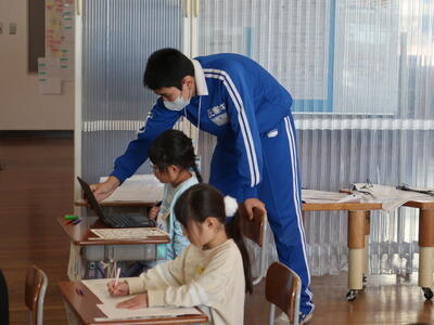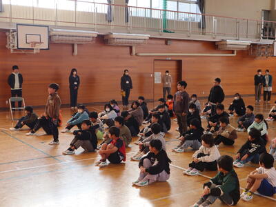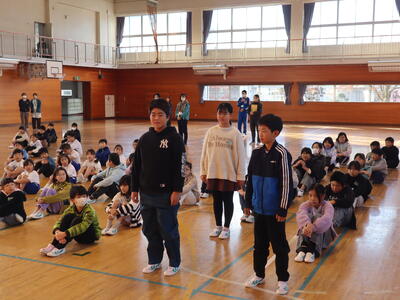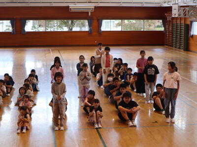 子どもたちにとっては先輩です。まさに「ようこそ先輩」。中学生に教わったり一緒に遊んだり、本校の子どもたちにとってもよい経験だったと思います。