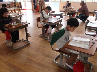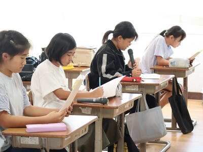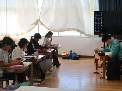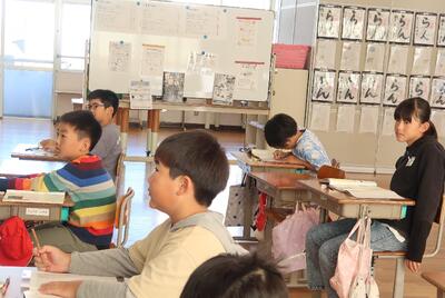隣の2年教室ではシーンとなって机に向かって手を動かしています。