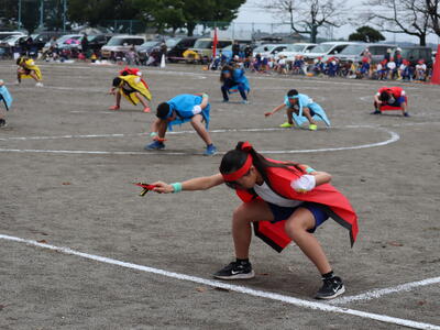大会当日、子どもたちは、自分たちのもっている力を出し切り、全力でたすきを渡す姿が見られました。チームが・自分が、どのような位置(順番)にいても決して気を緩めず、あきらめず、とにかく次の人にたすきを渡す姿に感動していました。また、チームみんなの全力の声援、走り終わってからの祈るような応援もしっかり走者に届いていました。