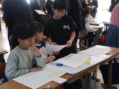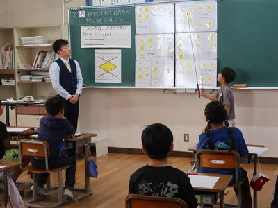 6年生の教室では、2~3人のグループになって何やら話し合っていました。