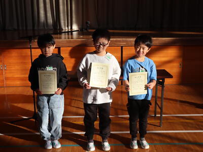 今回は、6年生2名、5年生3名、4年生3名、3年生2名、2年生3名、1年生2名、計15名が受賞しました。