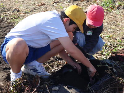 先週に1・2年、3・4年それぞれ合同でサツマイモ掘りをしました。