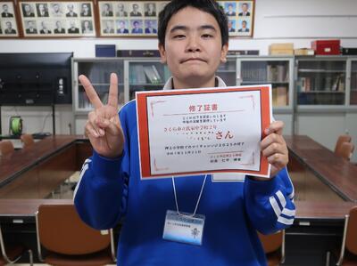 最終日には「修了証」(裏面に1週間の活動の様子の写真を載せました)を渡し、ねぎらいと感謝、そして今後の活躍を期待していることを伝えました。