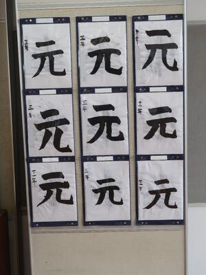 それぞれの「元」が完成です。「曲がり」を意識してよく書けました。次回は、ひらがな「つり」を習う予定です。