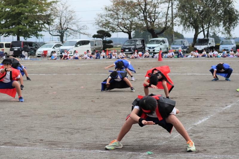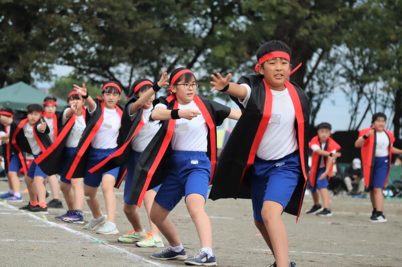 5・6年生の体育(運動会の練習)「よさこいソーラン」の様子です。それぞれの学年で練習していましたが、合同でやるのは初めてです。全力で、しかも楽しみながら演じているのが素敵です。(^_-)-☆