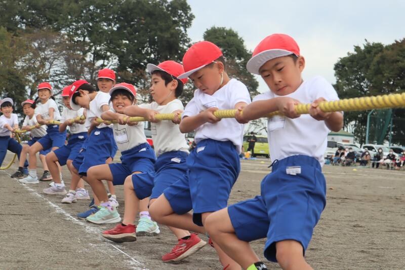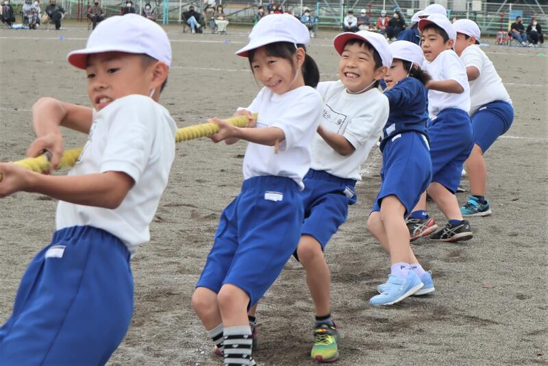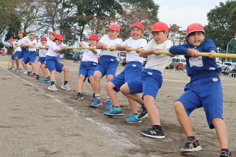 下の写真は、5年生の体育で綱引きをしているところです。円陣を組んで「気合い!」を入れ、「全力!」で取り組む姿が見られました。片付けは、「3つのあ」のあとしまつ・・・のとおり、みんなで協力して行っていました。綱引きの競技が終わった後は、赤組、白組関係なく仲間と「笑顔!」で交流しています。