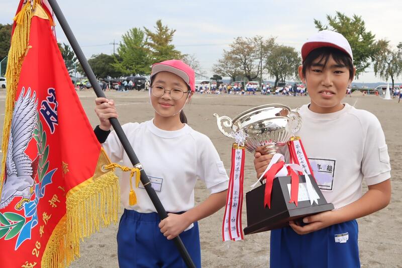 また、本校6年生が作成した応援のぼり旗や同じく5・6年生の子どもたちが定植した「ニチニチソウ」のプランターも会場を彩り、選手の晴れの舞台を演出していました。