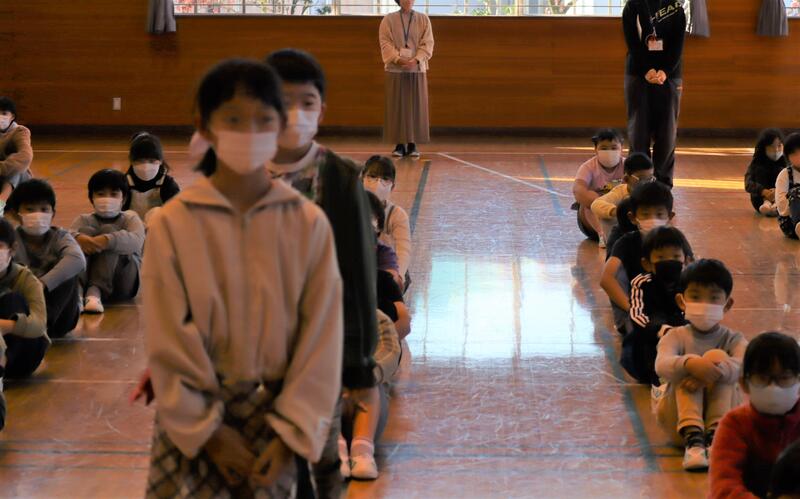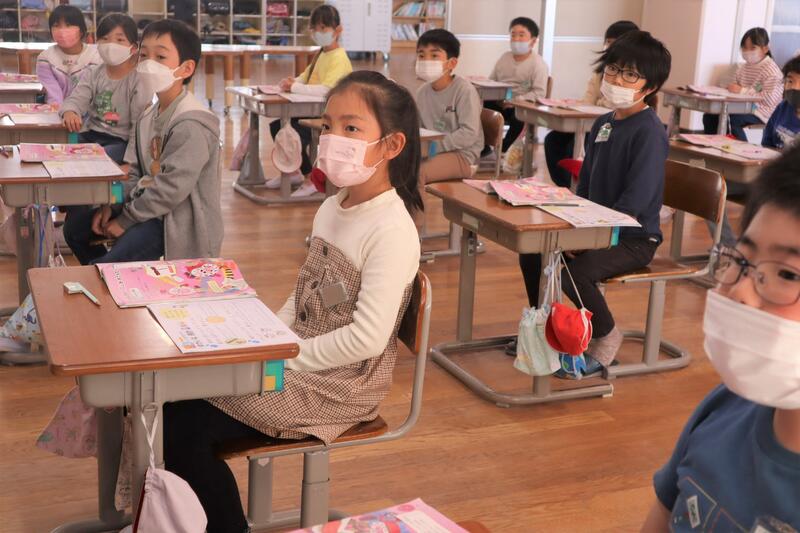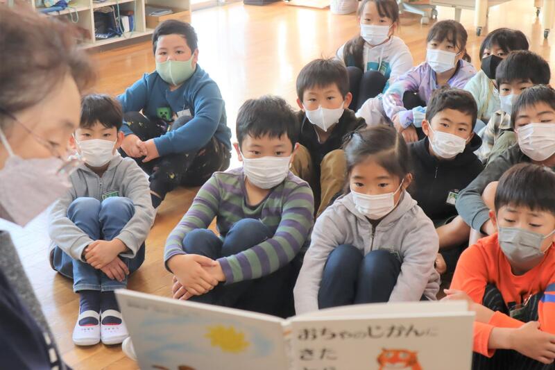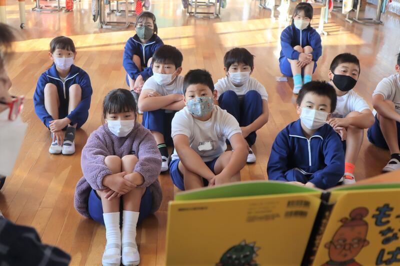 本日の朝の活動は「読書タイム」。担任ではない先生が各教室を訪問し「読み聞かせ」を行いました。