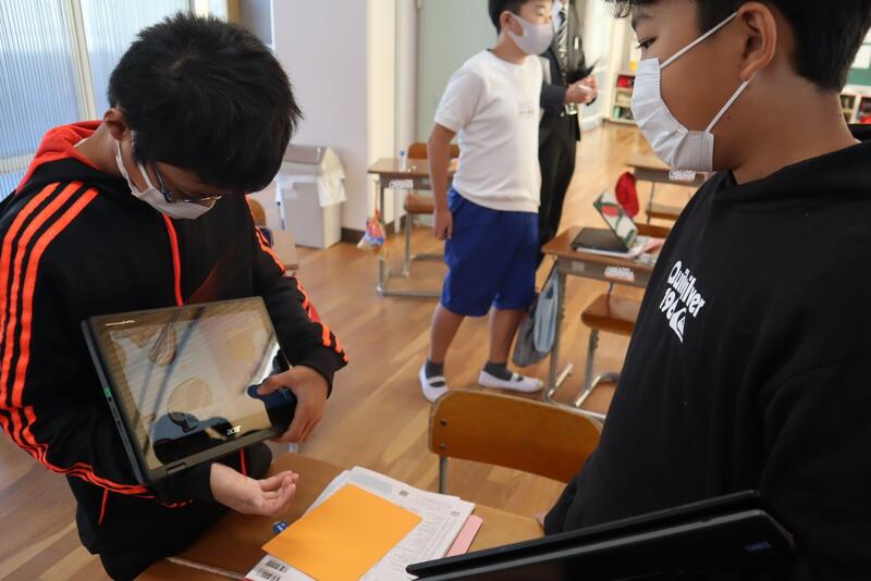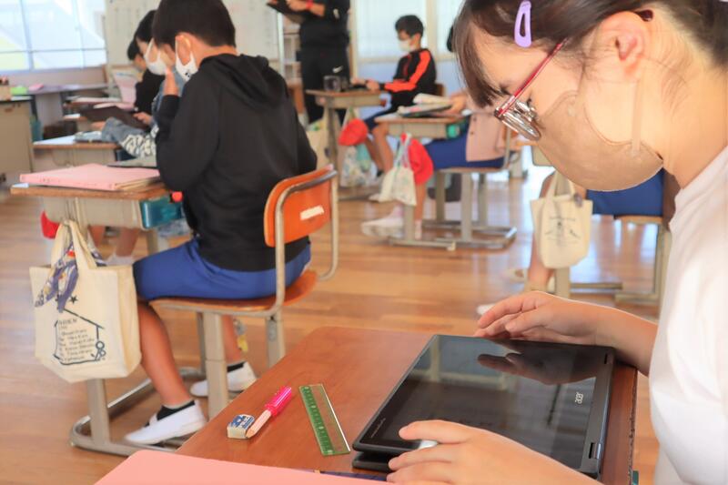 9月28日(水)の4年生の外国語活動「Unit 5 Do you have a pen? 」の授業の様子です。この時間は、一人一人が「こんな pencil case があったらいいな!!」のワークシートに文房具の絵を描き、そのワークシートをクロームブックで撮影して、ロイロノートでクラスの仲間と共有しました。その後、自分で描いた文房具の絵を英語で紹介する練習をしていました。