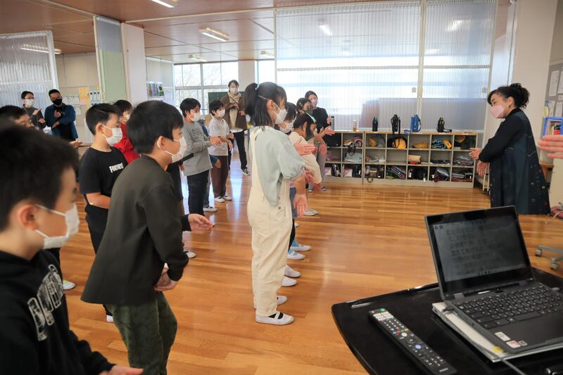 この時間は、楽器の音色やリズムの繰り返し・変化を聴き取り、その面白さを感じ取りながら、音楽の表している様子を思い浮かべて聴いていました。自然と体が動いてしまいます。