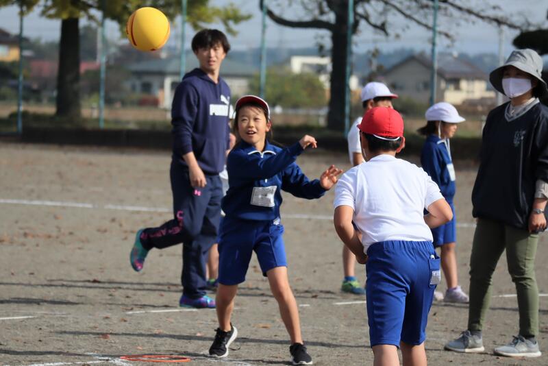 3年生の体育「ベースボール型(ハンドベースボール)」の授業の様子です。この単元は、「打つ、投げる、捕るなどのボール操作と、進塁したり得点を取ったり、反対にそれを防いだりする動きをして、ゲームを楽しむこと」を目的にしています。子どもたちは、ゲームが楽しくなるようにルールを工夫したり、作戦を考えたりしながら活動しています。