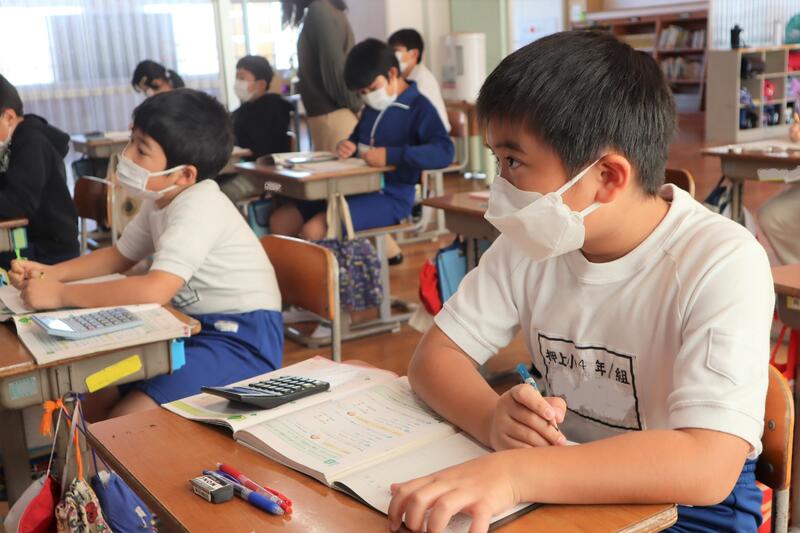 4年生の算数「およその数の使い方と表し方を調べよう」の授業の様子です。この単元は「概数の意味を理解し、数を手際よくとらえたり処理したりすることができるようにすること」さらに、「目的に応じて概数を用いることができるようにすること」をねらいとしています。概数を用いると大きさが捉えやすくなったり、物事の判断や処理が簡単にできるようになったりします。それらが実感できるようになるといいですね。