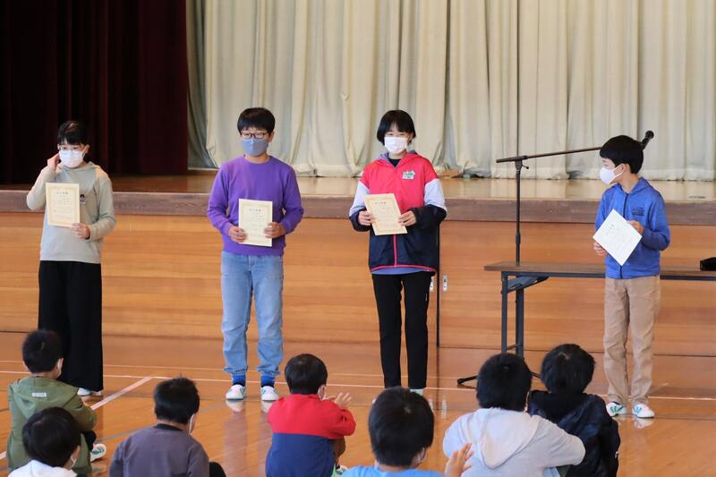 11/9(水)、今朝の活動は、表彰朝会として今年度4回目の「松の実賞」の表彰をしました。