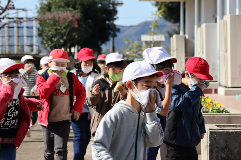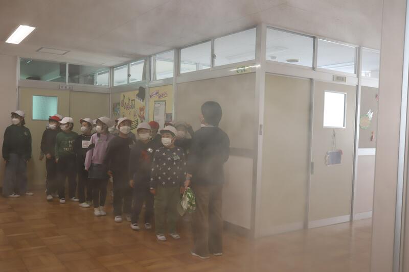 スモーク体験をした4年生の児童からは、「煙の中だと前が見えなくて怖いと感じた」や「低い姿勢にした方がいいことがわかった」、「火事は、火も怖いけど煙の方が危険なことがわかった」などの感想を話してくれました。