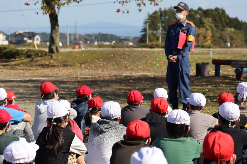 本日11/9(水)の3時間目に、全校生による学校行事「避難訓練(火災発生を想定して)」を実施いたしました。今日は、火災発生を想定した避難訓練で、①授業中に、②家庭科室から出火して、③校庭に避難しました。そして避難後には、氏家消防署の方からご指導いただきました。