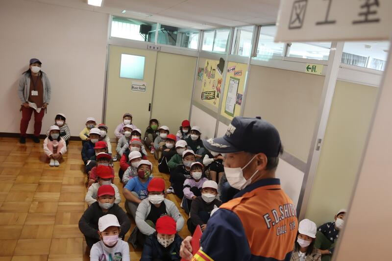 子どもたちは、真剣な表情で避難訓練、防災学習及び体験に取り組んでいました。
