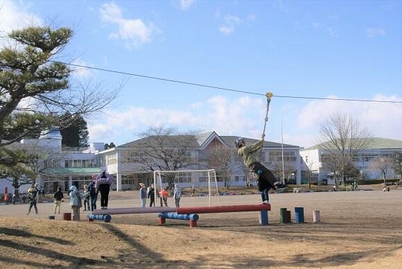 2時間目が終わると、校庭にはたくさんの児童が集まり、身体を動かして元気いっぱいに遊んでいます。