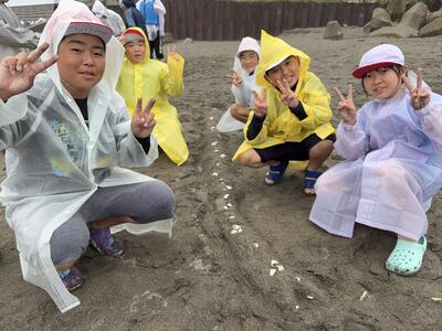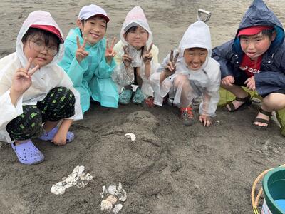 「水がかかって服が濡れたけど、着替えをもってきているから平気!」「暑いから水が気持ちいい!」子どもはたくましいです。そして、シャボン玉遊びをしていると、ふわふわ浮いているシャボン玉を的にして水鉄砲で水をかける遊びをし始めました。子どもは新しい遊びを考える天才です。