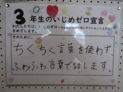 本校では、幸せを感じる学校となるために大切な「ルールとマナー」として「3つの『あ』」を指導しています。「3つの『』」とは、「んぜん」「いさつ」「としまつ」です。そのうちの「あとしまつ」の具体的な行動として「靴を揃える」を指導しています。