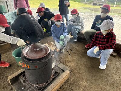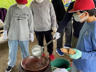 「私の生活、大発見!」という単元で、自分にできそうな家庭での仕事を見つける・活動してみるという学習です。「仕事」というと「やらなければならないこと」という感じですが、ここでは「家族の一員として生活をよりよくするためにどんなことができるか」を大切に勉強を進めます。よりよい生活に向けて、家族がほっとできる「ティータイム」、お茶の時間をもってみようということで、実際にお茶をいれる実習を行いました。お湯を沸かして、急須に茶葉を入れて、お湯を入れて、蒸らして、濃さを均等にするように湯飲みに注いで…いろいろやることがあります。そしてみんなで「ティータイム」。お茶がちょっと苦手な子もいたようですが、みんなで楽しくいただいていました。中には、もう一度お湯を沸かして「おかわり」する班も。楽しいひとときが過ごせたようですね。おうちでもぜひ実践してほしいなと思います。