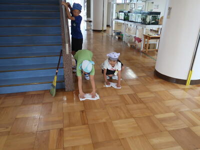 本校では、月・火・木の週3日、清掃を行います。新しい清掃場所で、子どもたちは気分一新、がんばって学校をきれいにしています。人数が少ないので、一人一人の取組が重要です。きれいな学校のためにもよろしくお願いしますね。