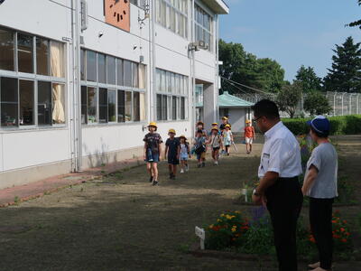 3年生の子どもたちが元気に昇降口から出発していきました。