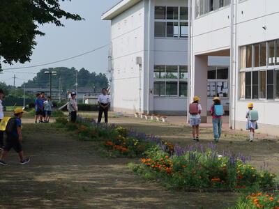 校舎前の花だんの花も元気に咲いています。