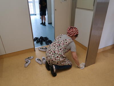 今日の清掃風景です。初日から約2週間。新しい担当場所での清掃にも慣れ、手際よくできるようになってきました。