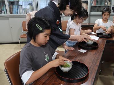 先日、5年生が家庭科でお茶をいれる学習をしました。