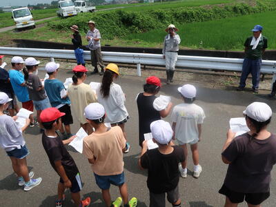 先月末、3年生が社会科の校外学習で、学校のまわりの様子を調べに校外学習に出かけました。2回に分けて校外学習を行う予定で、今回は「学校の南・西コース」でした。市の堀用水や押上地区の旧押上小跡地などを巡りました。歩きながら、また見学ポイントでは、友だち同士で話し合ったり熱心にメモしたり。あらためて歩いてみると、いろいろな発見があるようです。
