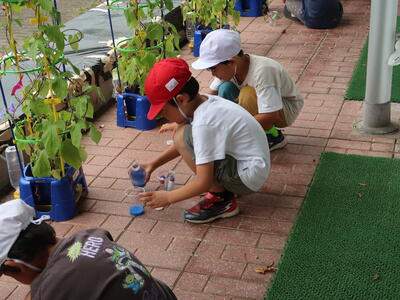 先日、1年生がワクワクした様子でペットボトル容器を持って業間休みに外に出て行きました。