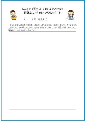 ★学校から出される課題と重複することもあるかもしれませんが、その内容でもけっこうです。(例えば…読書感想文を書く人は、感想文にチャレンジしてどうだったかをこの「夏チャレ」レポートにまとめる など)
