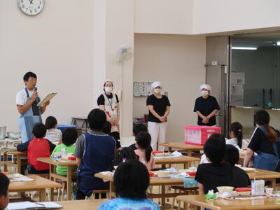 さくら市では、現在市内小中学校合同の新給食センターを建設中で、夏休み明けから、いよいよセンター給食が始まります。それにともない、本校にある「調理室」は改修工事を行い、休み明けからは「配膳室」(センターから運ばれた給食を一時保管したり、クラスごとに分けたりするところ)に生まれ変わります。また、調理員さんはいなくなり、配膳員さんが配属されることになります。