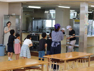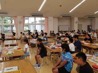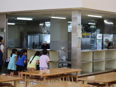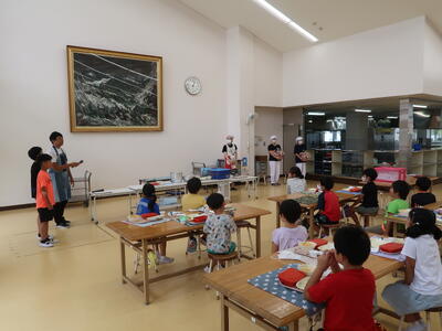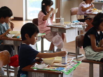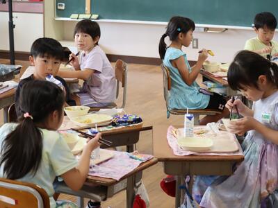 調べてみたところ、昭和30年に旧校舎で給食室が新築されたようで、その頃に本校で給食(自校給食)が始まったと思われます。およそ70年の歴史ある給食が大きな転換点を迎えました。その間、たくさんの調理員さんや栄養職員の皆さん、食材納入関係の皆さんにお世話になりました。感謝申し上げます。夏休み明けからセンター方式となりますが、引き続き、安心安全なおいしい給食とともに、本校の児童がたのしくそして給食をとおして幸せを感じることを願っています。