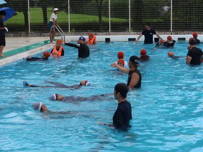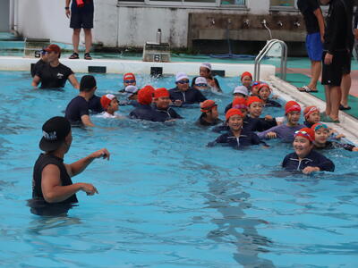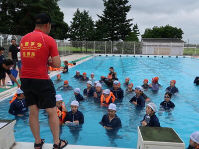 「押上の子は何でこんなに上手なんだろう!みんながしっかり取り組んでいてすばらしいです。なかなかないことですよ。」参加児童がみんな一生懸命に「浮いて待つ」体験に取り組み、講師の先生からこんなお褒めの言葉もいただきました。うれしいことです。「自分の命は(最後は)自分で守る」ことを学んだ大切な機会となりました。これから始まる夏休みが安全なものとなることを願っています。学会の皆様、大変お世話になりました。
