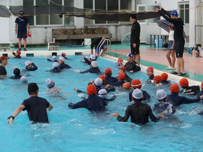 暑い日でしたが、室内スポーツクラブもエアコンをきかせた体育館で行うことができました。また屋外スポーツクラブはプールに入りました。水中ドッジボールで盛り上がったようです。