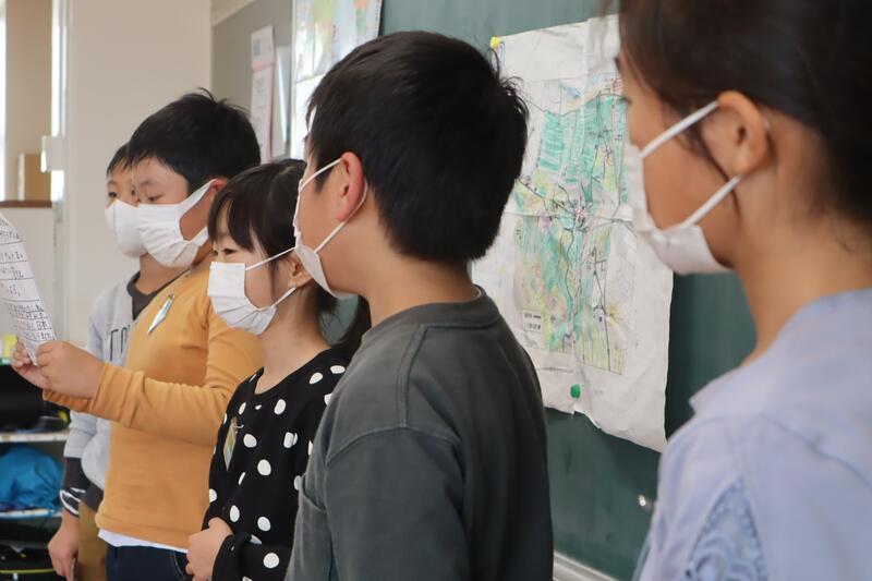 5年生の「総合的な学習の時間」地域の自然環境を保護することの大切さを学ぶ授業の様子です。