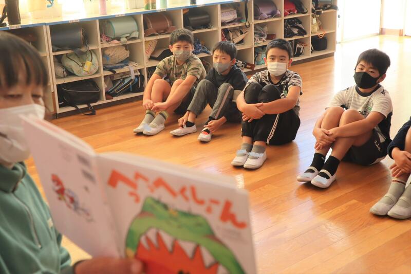 さくら市では、「さくら市の4読(朝読〈あさどく〉・すきま読書・チャレンジ読書・家読〈うちどく〉)」を推奨し、また、本校でも「読書指導の充実」を本年度の努力点・具体策の一つに設定し、教育活動を実践しております。中でも読み聞かせは、子どもたちに大人気で、読み聞かせをきっかけに本を借りる児童も多くいます。