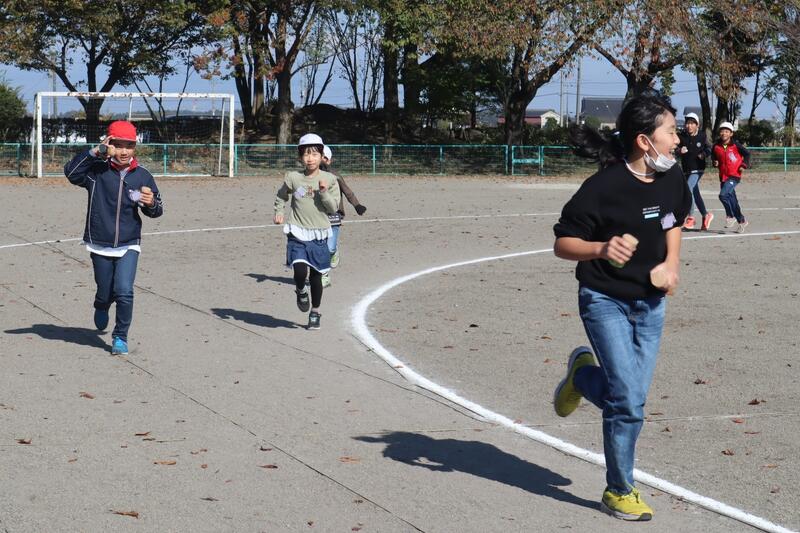 10/31(月)~11/15(火)までを、業間休みの「持久走の練習」と位置づけ、子どもたちは自分のタイミングで練習しています。この期間はマラソンカードを活用し、走った距離に応じてカードに色を塗ります。