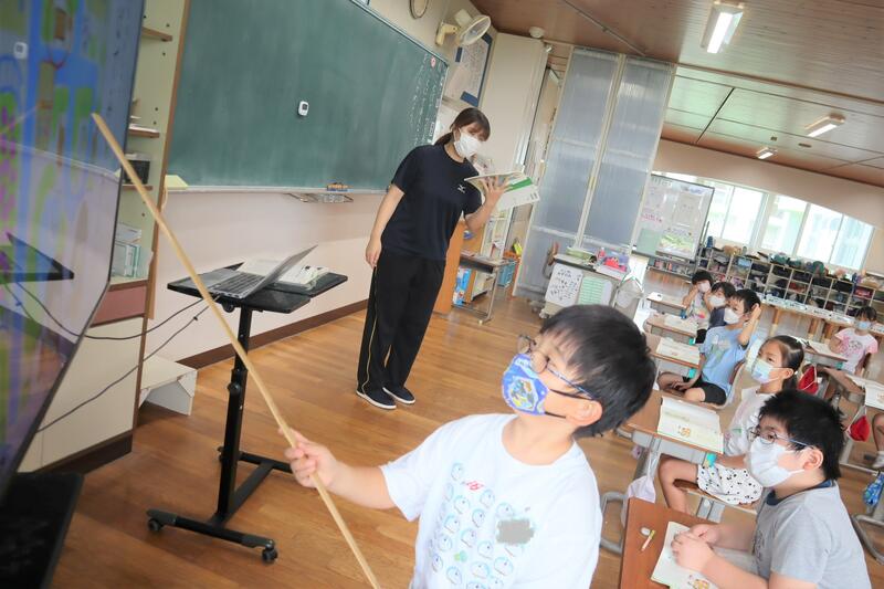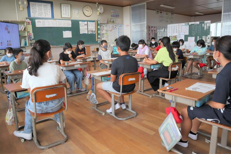 (^O^)/1~5年生の教室を訪問しました。写真はそのときの様子です。