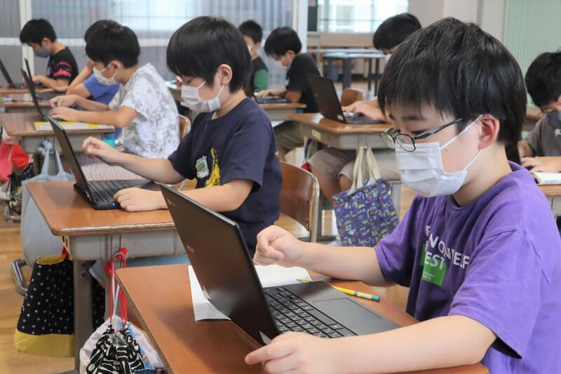 4年生の国語「新聞を作ろう」の授業の様子です。子どもたちは、クロームブックを活用し夏休みの思い出をまとめていました。これまでに習ったことを生かし、書く内容の中心を明確にした上で、内容のまとまりで段落をつくったり、段落の相互の関係に注意したりして、文章の構成を考えています。