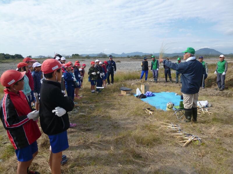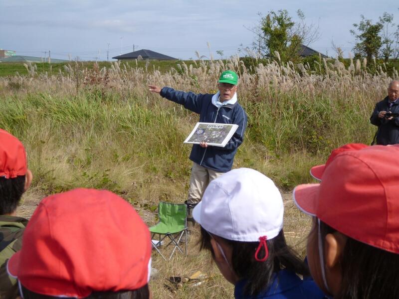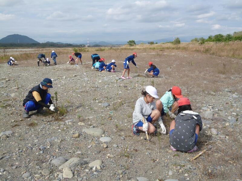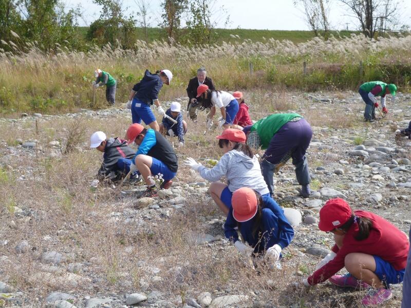 10月31日(月)に、5年生は総合的な学習の時間に、鬼怒川の河川敷で、明友会の皆さんと一緒に、「環境保全活動」を行いました。さくら市の天然記念物である「シルビアシジミ」という蝶を守るために、この蝶が食べ物としている「ミヤコグサ」をだめにしてしまう、外来植物である「オオフタバムグラ」の抜き取り作業を行いました。