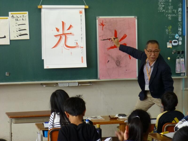 25日(火)の3年生の書写は、外部講師による授業が行われました。子どもたちは、心を落ち着かせて、筆を持ち、「光」という文字を練習しました。