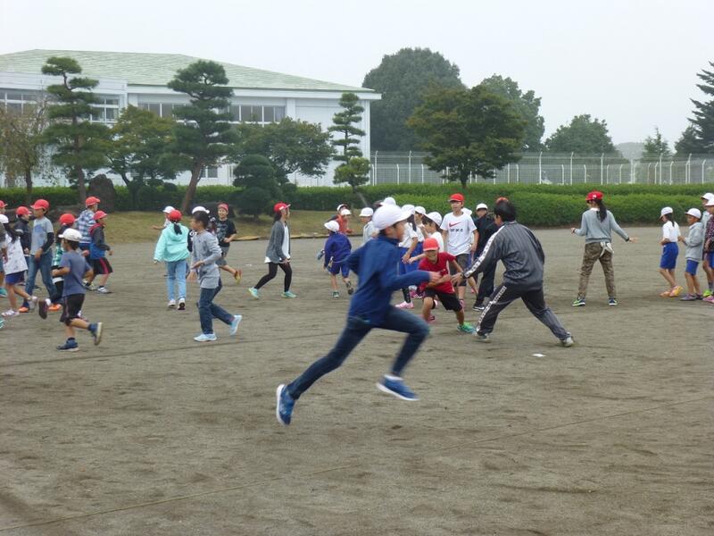 5年生と6年生は、校庭で中線踏みをしました。風が強く寒そうでしたが、子どもたちは元気に走り回っていました。