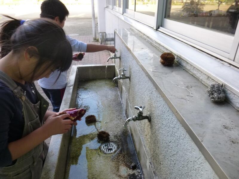4年生は、サツマイモを洗って、スイートポテトを作る準備をしました。