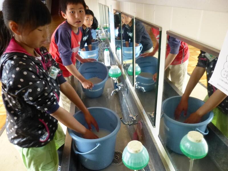 7月11日(月)の掃除は、お掃除ボランティア「さくら隊」の10名の皆さんがお手伝いに来てくださいました。放課後のワックスがけの準備として、昼休みの掃除には、床の水雑巾を中心に行いました。子どもたちへは、雑巾の絞り方、床の水雑巾のふき方、トイレ掃除では、便器の洗い方などを一緒に活動しながら、丁寧に指導してくださいました。日頃は、教職員が1人で何カ所も掛け持ちで指導していますが、今日は、細かく丁寧に指導することができました。次回は、12月頃の予定です。