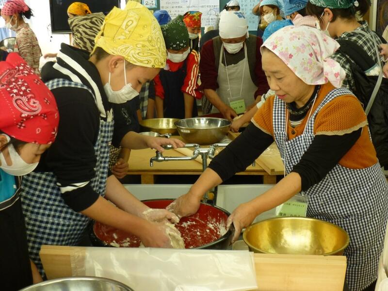 来ていた子どもたちに声をかけようという趣旨です。また、今年はイベントとして「小学生氏家うどん打ち大会」が行われました。押上小からも2名が参加しました。